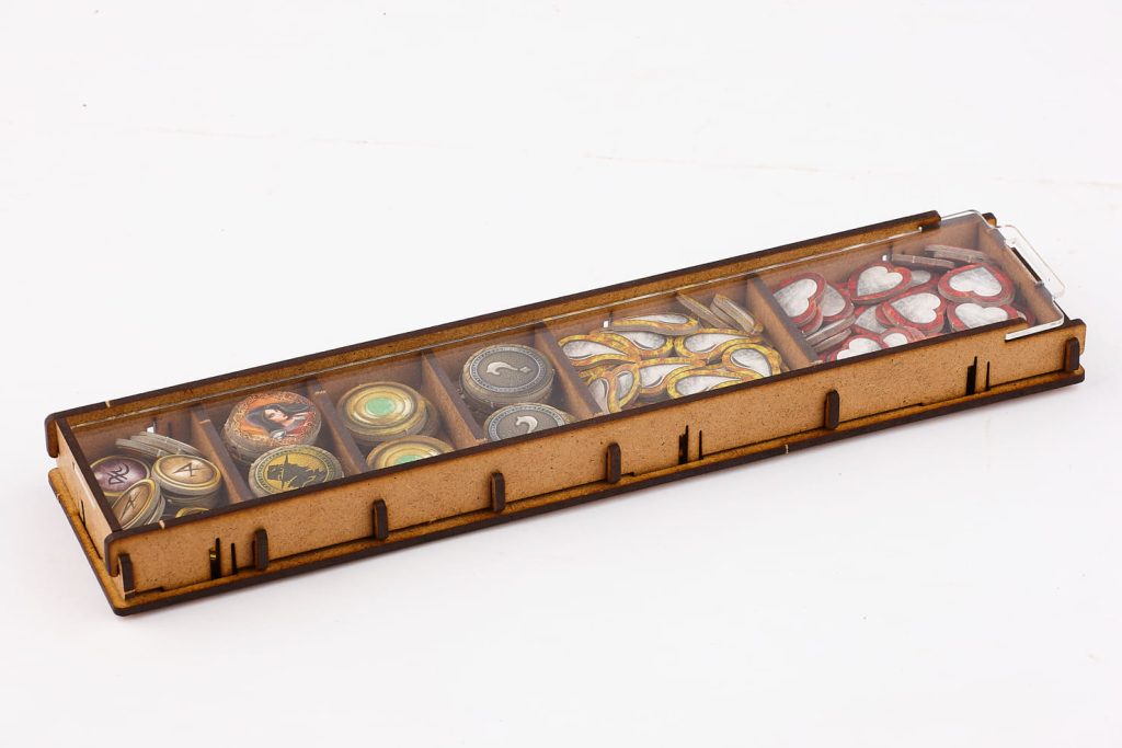 The acrylic tops covering the token trays and figures make the insert look far more premium than the sum of its parts.