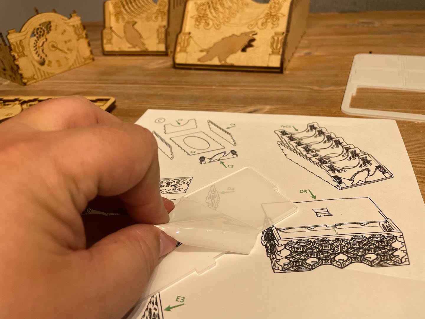 There are a total of 5 sheets of MDF and a sheet of Acrylic in the TowerRex Mysterium insert. The components will pop cleanly from the sheets so be careful to only take out what you need for each component. Work slowly and methodically until you have completed each part and then move on to the next.