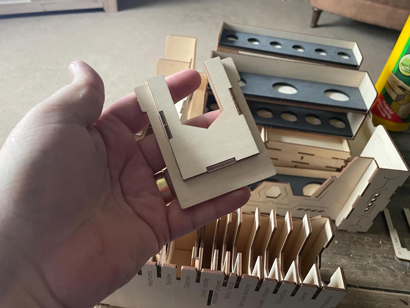 I did not specifically see it mentioned in the Nemesis Insert manual so it is worth mentioning here that the holders for the Military, Medical and Technical cards do not have their front parts glued in position, instead, during play they are taken out and used underneath to make the cards easier to draw.