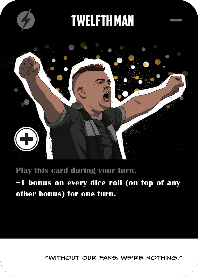 Attacker cards are green: These cards are used to create or improve scoring chances most often by adding to a dice roll however some, like perfect execution, almost guarantee a goal.