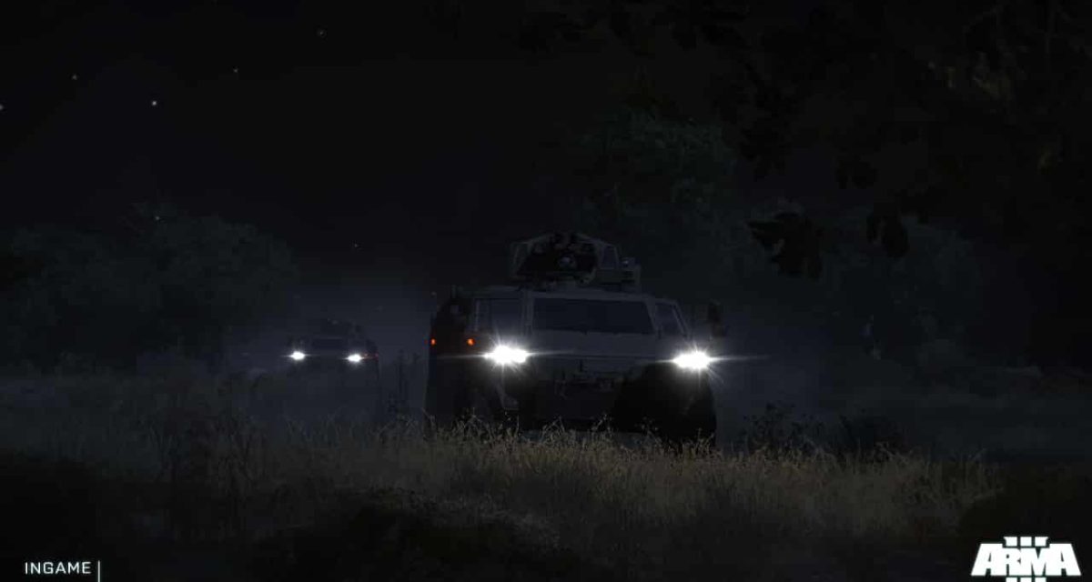 Arma-3-image-showing-stealth-vehicles-riding-through-the-night-towards-a-batt...